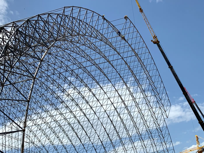 (2)网架加工前应对现场尺寸进行复测,确认无误后方可进行加工、安装;网架制作、运输、安装应遵守《空间网格结构技术规程》JGJ7-2010、《钢网架昌吉螺栓球节点》JG/T 10-2009、《钢网架昌吉螺栓球节点用高强度螺栓》 GB/T 16939-2016、《钢结构昌吉工程昌吉施工规范》 GB50755-2012、《钢结构昌吉工程施工质量验收标准》 GB50205-2020。
